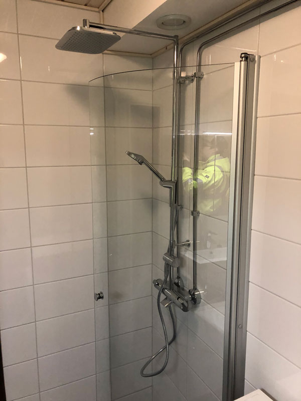 Sovimme että kylpyhuone tehdään uusiksi ja saunasta uusimme lattian vesieristyksen sekä lattialaatat. Lupasimme myös samalla uusivamme kylpyhuoneen lattiakaivon sekä johtavamme lämminvesivaraajan huohotusputken saunasta lattiavaluna uuteen kaivoon. Remontti alkoi kahden viikon kuluttua ensimmäisestä tapaamisestamme ja sujui kaikin puolin mukavasti. Suojasimme aluksi kohteen hyvin ja järjestimme asiakkaalle illaksi WC-pöntön takaisin paikoilleen, jotta elo kotona sujuisi kaikin puolin mukavasti remontin aikana. Tämän jälkeen aloitimme varsinaisen työn, jonka kuluessa kylpyhuoneessa meni kaikki uusiksi vesieristystä, lattiakaivoa sekä laattoja ja kattopaneeleita myöten.